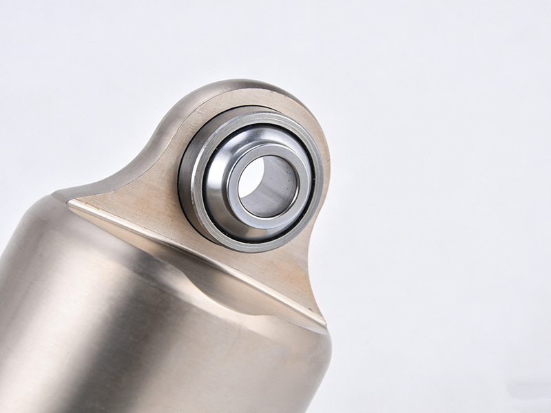 A suspension spherical bearing — also known as a uniball joint — is installed at the shock absorber mounting point (eyelet) to replace rubber bushings and provide precise articulation under dynamic load.